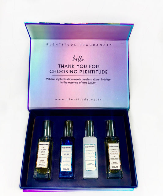 At PLENTITUDE, we redefine luxury with perfumes that embody versatility and long-lasting allure. Crafted from the finest ingredients, our fragrances offer an unmatched sensory experience, ensuring you leave an unforgettable impression. Setting a new industry standard, we are proud to introduce exclusive firsts, such as free samples with every bottle, allowing you to explore more of our exquisite collection. With a commitment to delivering exceptional quality and unparalleled value, PLENTITUDE is your ultimate destination for sophisticated scents that exceed expectations without compromise.