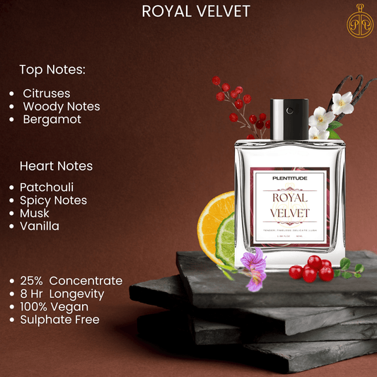 Royal Velvet Eau De Parfum | Luxurious Long-Lasting Woody & Floral Fragrance for Women | Plentitude